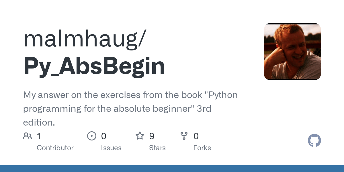| Open Github Malmhaug Py Absbegin My Answer On The Exercises From The Book Python Programming For The Absolute Beginner 3rd Edition |